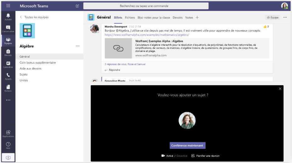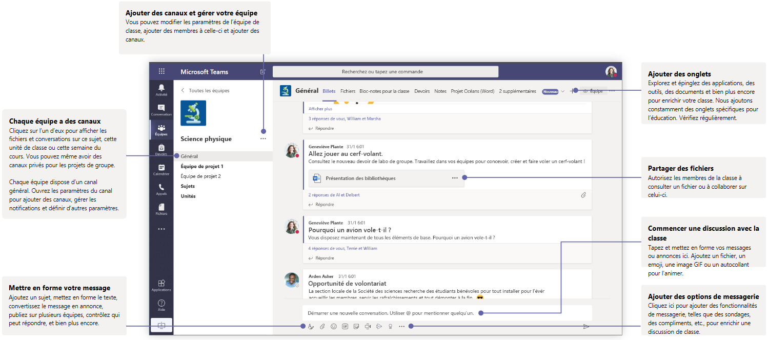 Les équipes de classe fournissent des fonctionnalités spéciales adaptées à l’enseignement et l’apprentissage .