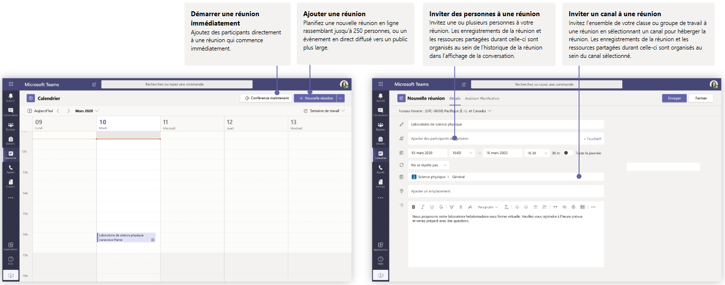Organisez des cours, des réunions de collaboration pour le personnel ou des formations via des réunions en ligne .