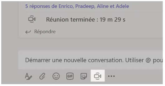 Cliquez sur Conférence maintenant sous la zone de message pour démarrer une réunion Live Meeting dans un canal. Si vous cliquez sur Répondre en regard d’un message, la réunion est jointe à cette conversation. Si vous souhaitez démarrer une réunion indépendante non liée à un canal, suivez les instructions de la page précédente en sélectionnant Calendrier > Nouvelle réunion .