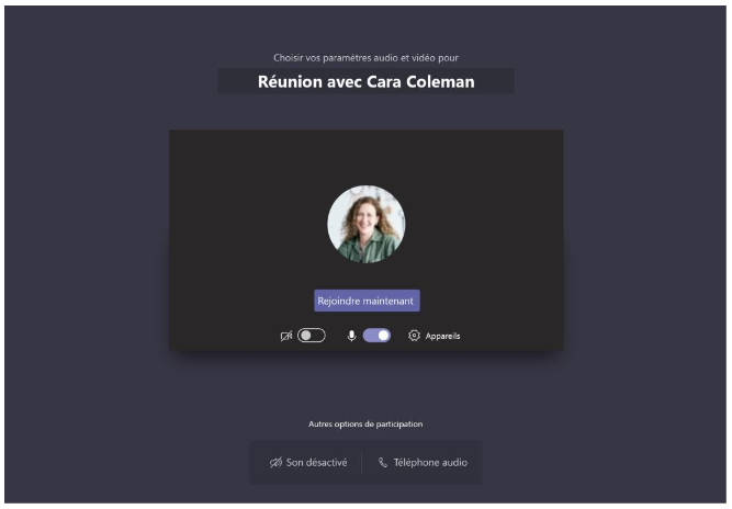Étape 3 : Vérifiez soigneusement vos entrées audio et vidéo, puis activez la caméra et le microphone. Sélectionnez Rejoindre maintenant pour participer à la réunion.