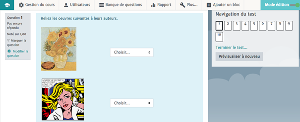 Étape 2 : Créer votre test : cf. Voir le tutoriel « Créer des tests dans Moodle » points 3 ;
