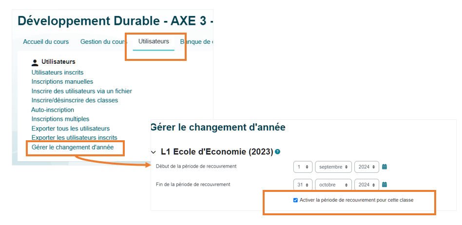 Activer la période de recouvrement pour cette classe