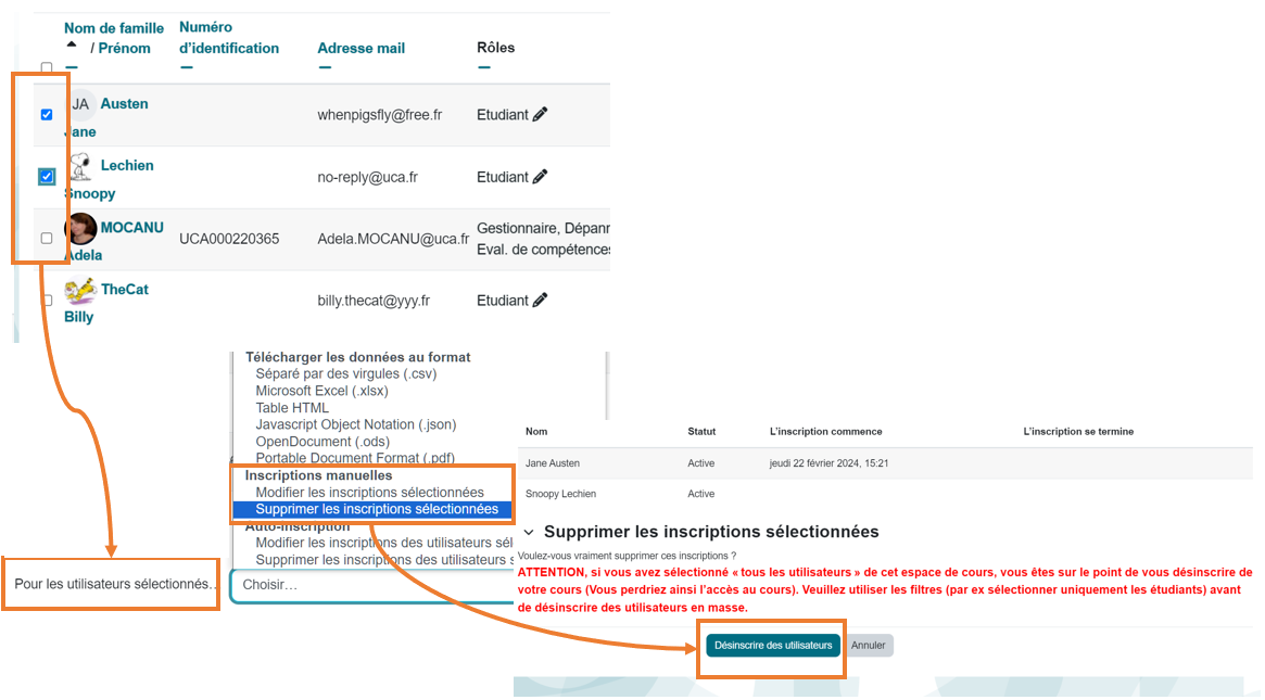 : Confirmez la liste des utilisateurs à désinscrire en cliquant sur