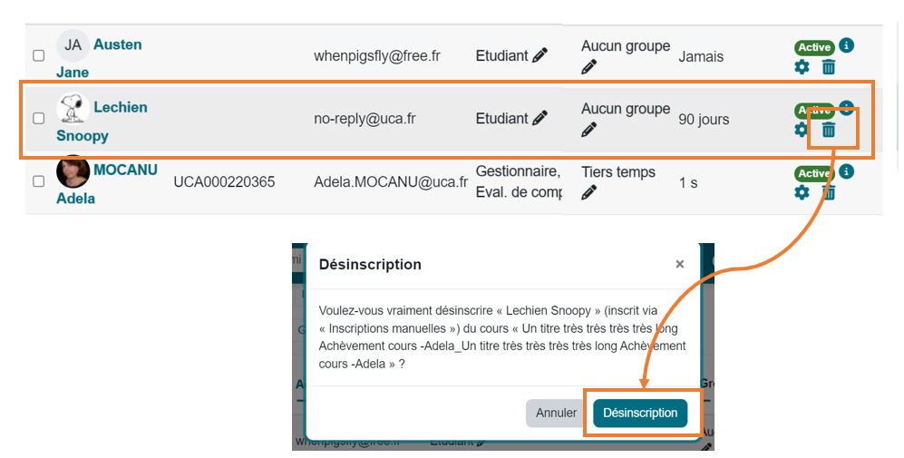 Ce processus permet de maintenir la pertinence de la liste des utilisateurs inscrits au cours.