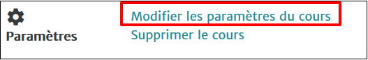 Étape 3 : Cliquer dans " Modifier les paramètres du cours "