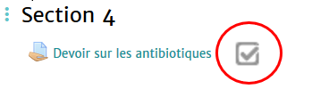 Toute nouvelle ressource ou activité créée dans ce cours, sera maintenant automatiquement associée à une condition d’achèvement. Voici le pictogramme qui indique cette fonctionnalité