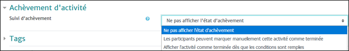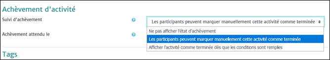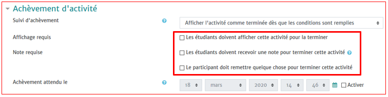 Vous avez maintenant 3 possibilités pour l’achèvement d’une activité ou une ressource :