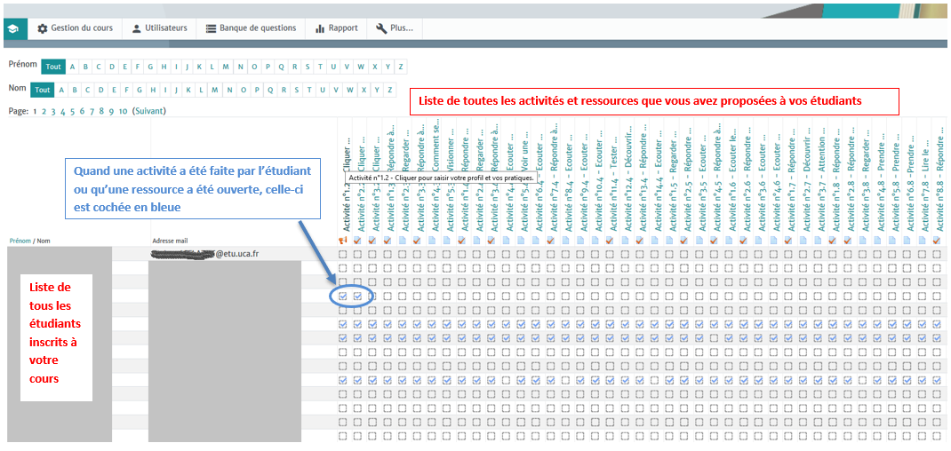 Objectif : suivre si chaque étudiant effectue les activités demandées