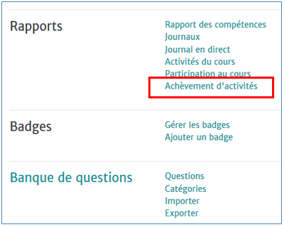 Étape 2 : Cliquer dans " Achèvement d’activité "
